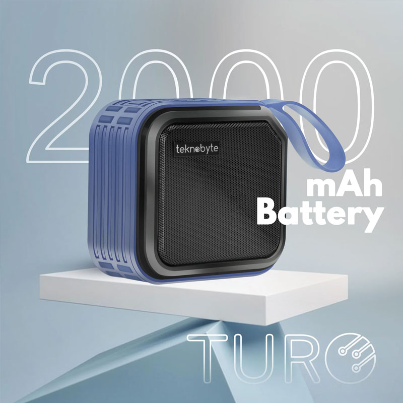 Pop in your favorite tunes and turn up the volume! Teknobyte Turo Bluetooth is a high-quality outdoor speaker, BIS certified & tested with an output of 5W, that produces astounding sound and provides Super Bass. Because of a 2000mAh battery that can last up to 16 hours, you can party all day without wires or worries!